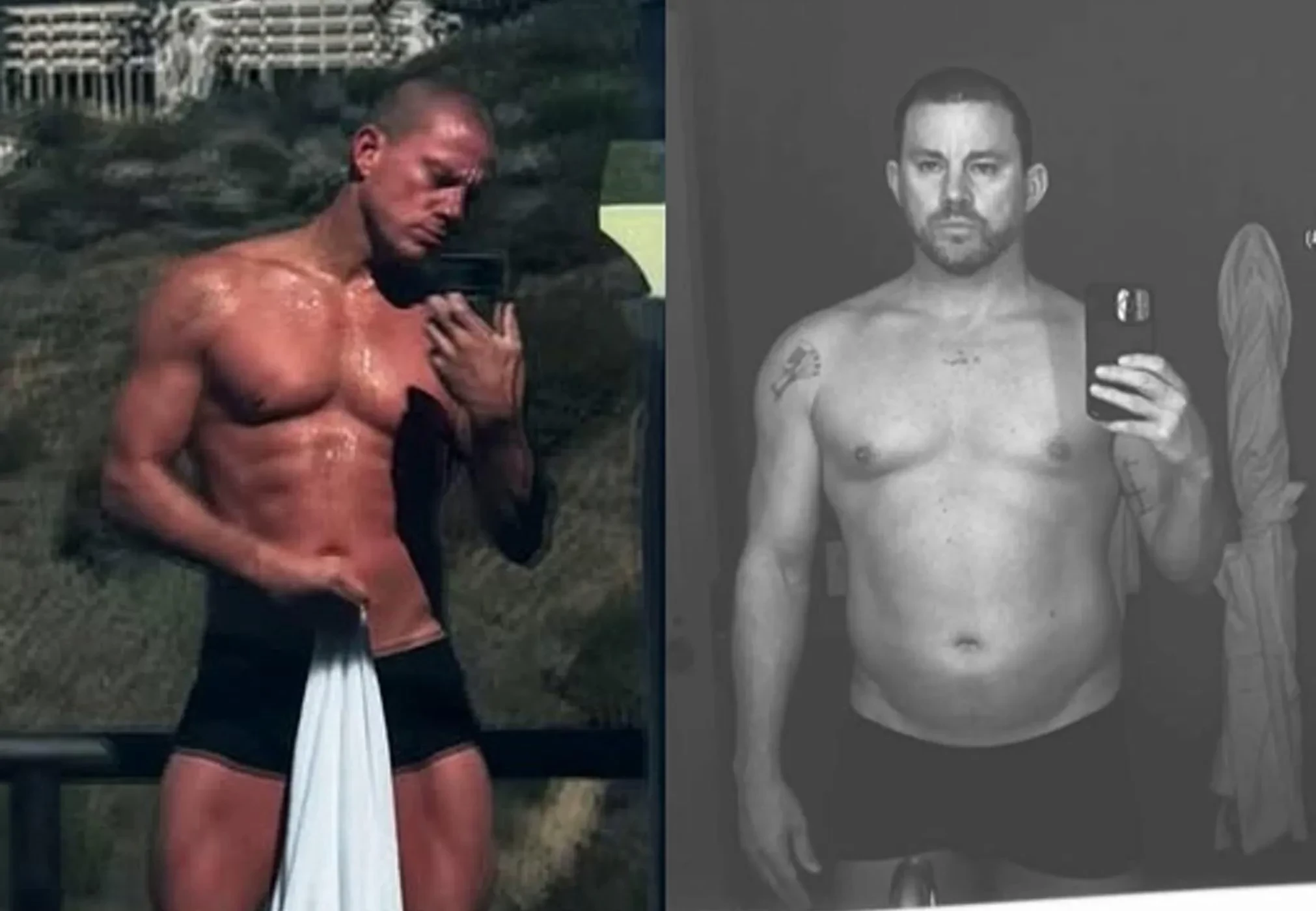 Актер показал серию фото. На одном из них он запечатлен в нынешнем весе — 92 килограмма, на другом — в весе 106 килограммов. Актер поправлялся ради роли в фильме “Жозефина”. Также в подборку вошел кадр, на котором Ченнинг весит всего 78 килограммов — он сбрасывал вес для другой роли в картине “Кровельщик”.