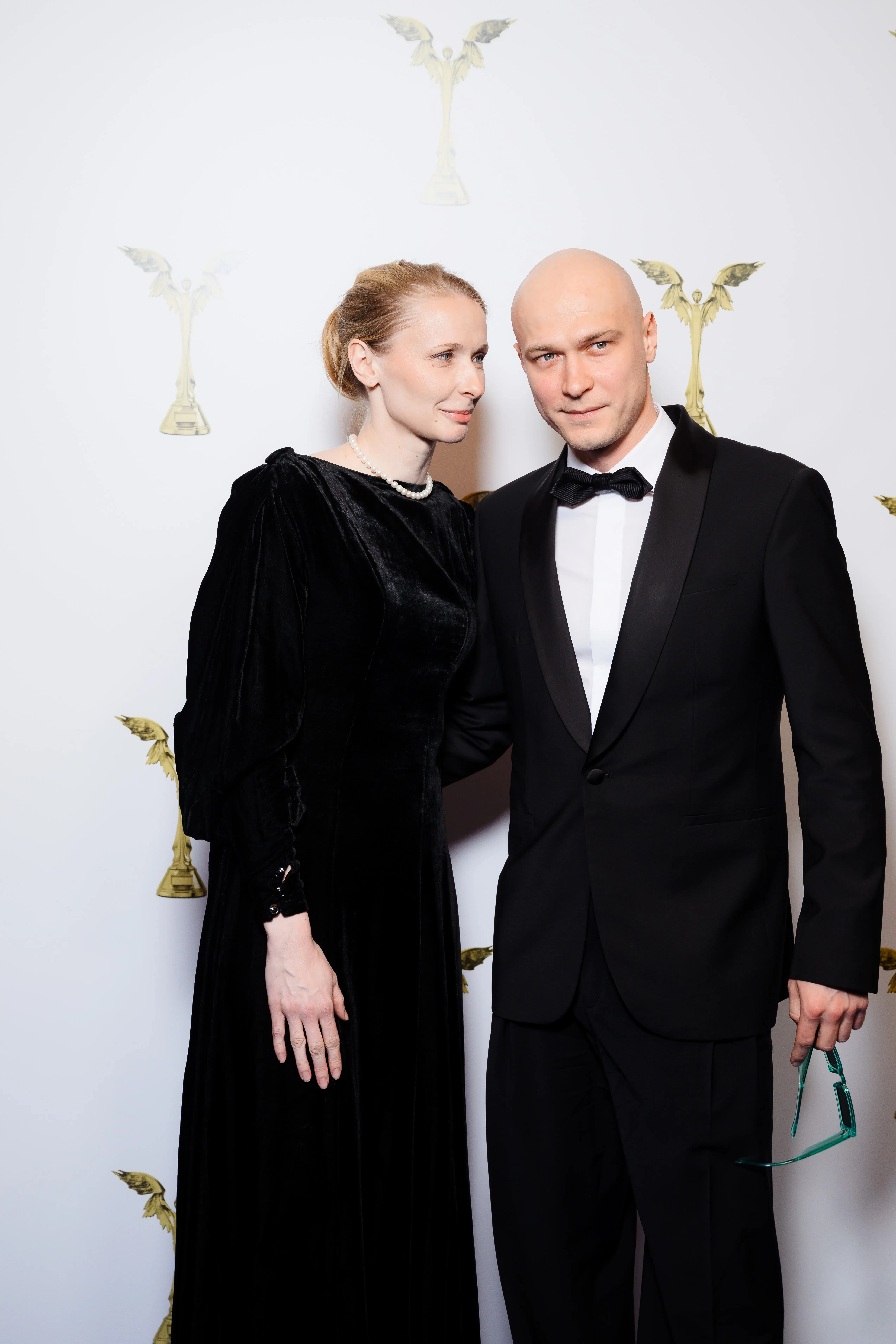 Для выхода в свет Борисов выбрал классический смокинг Dmitry Loginov с широкими брюками, рубашкой, бабочкой в стиле old fashion и камербандом. При этом уже в зале он надел солнцезащитные очки в яркой оправе. 34-летняя Анна появилась в театре "Маска", где проходила церемония, в чёрном бархатном платье в пол. Свой образ она дополнила ниткой жемчуга. Супруги держались за руки перед камерами.