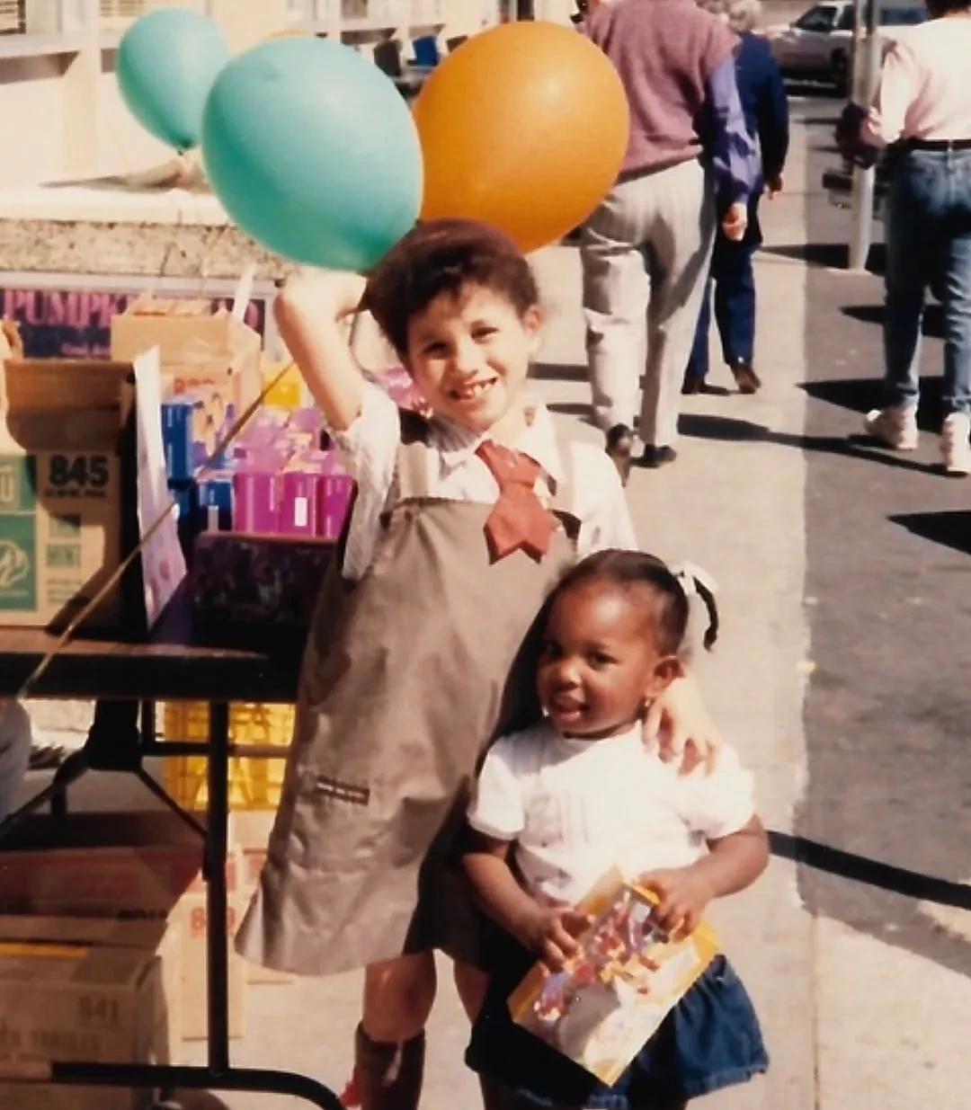 "Стать предпринимателем можно с раннего возраста (кстати, спустя столько лет я всё ещё продаю печенье!)", — подписала кадры Меган, на которых она одета в серый сарафан и красный галстук.