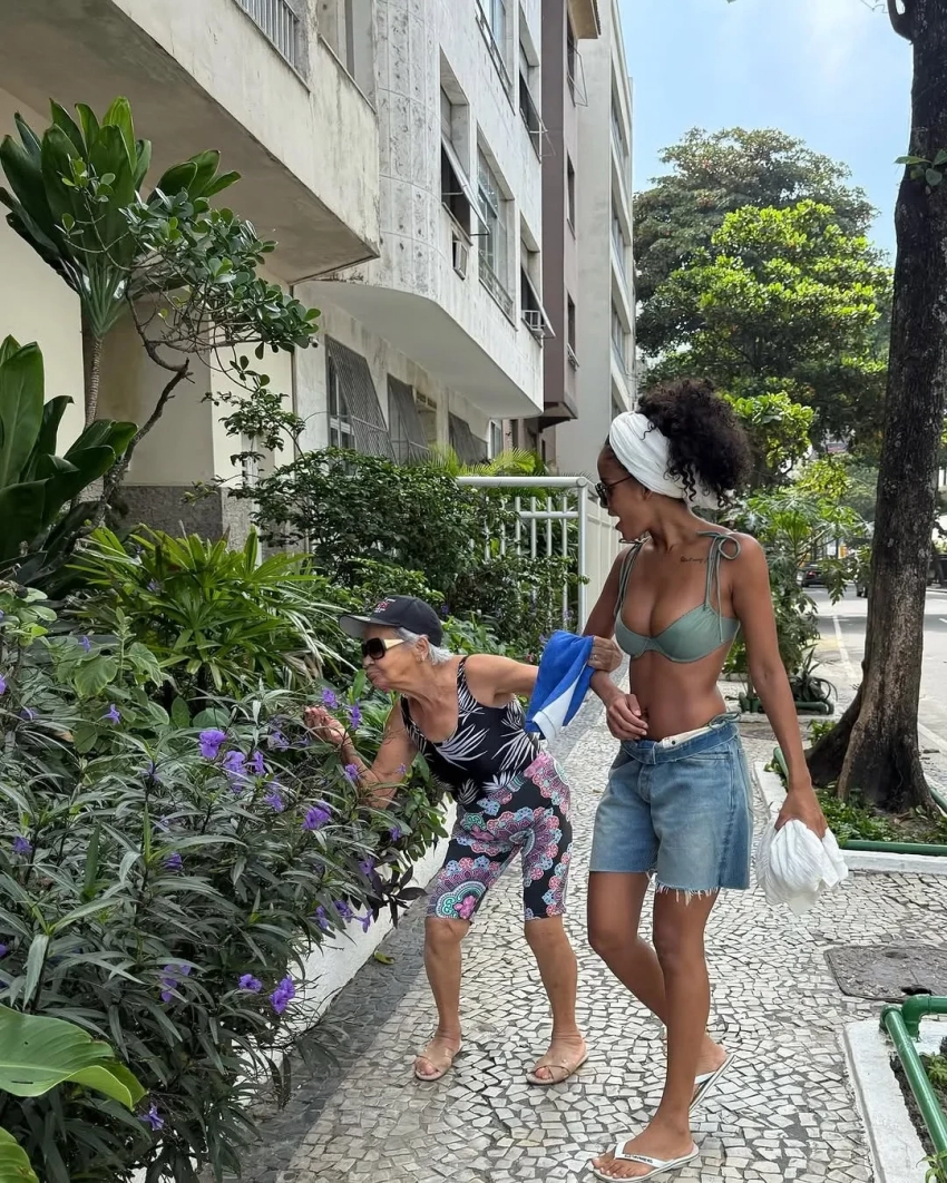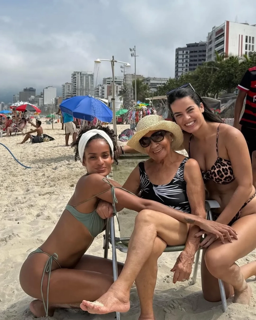 На фото Баптиста позирует с 58-летним Венсаном (с зелёными волосами) и своими родственниками: сестрой Сарой, бабушкой, мамой и другими. "То прекрасное, что у меня есть", — подписала кадры модель. Она также поделилась снимками с пляжа Ипанема в Рио-де-Жанейро, на которых запечатлена в бикини спустя три месяца после родов.