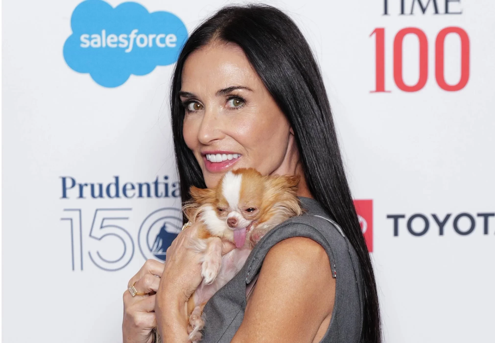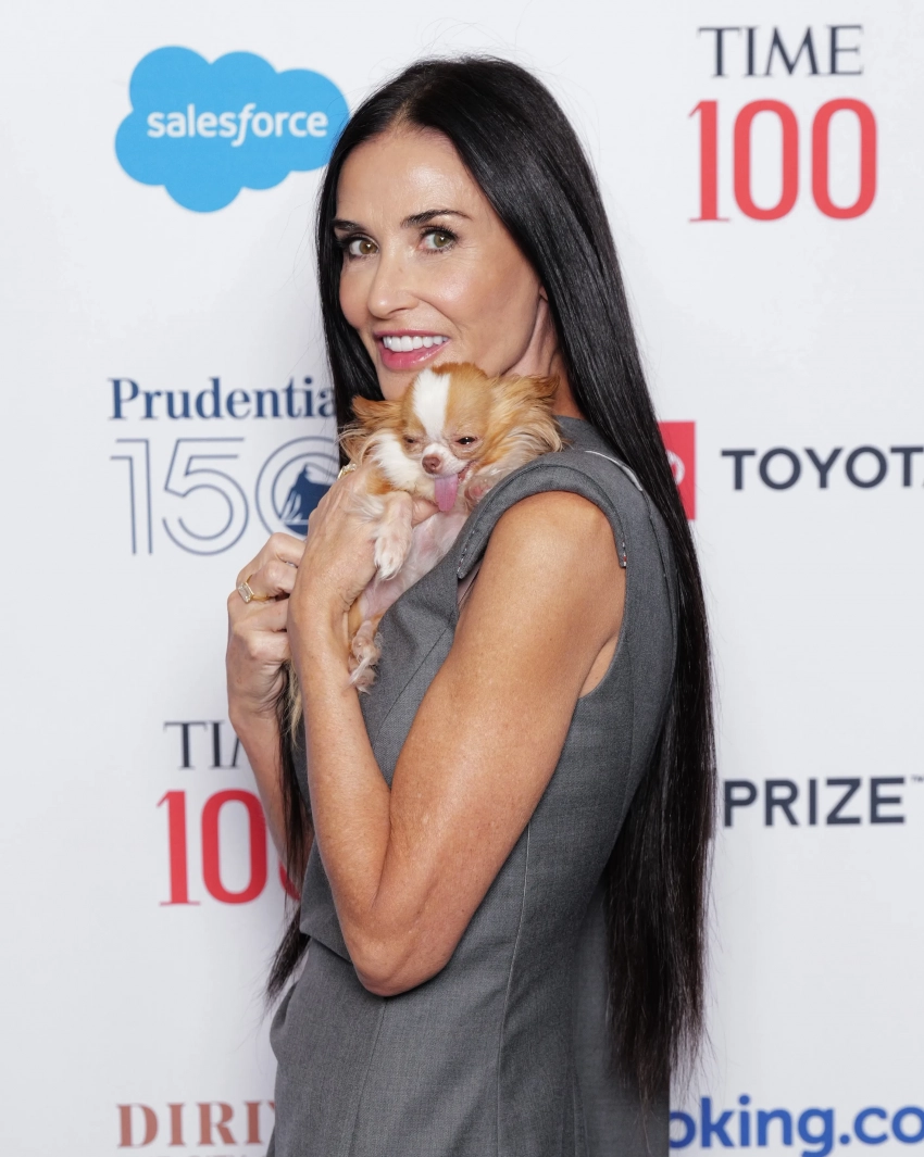 Деми Мур с собачкой Пилаф, Райан Рейнольдс и Николь Шерзингер посетили саммит Time 100 в Нью-Йорке