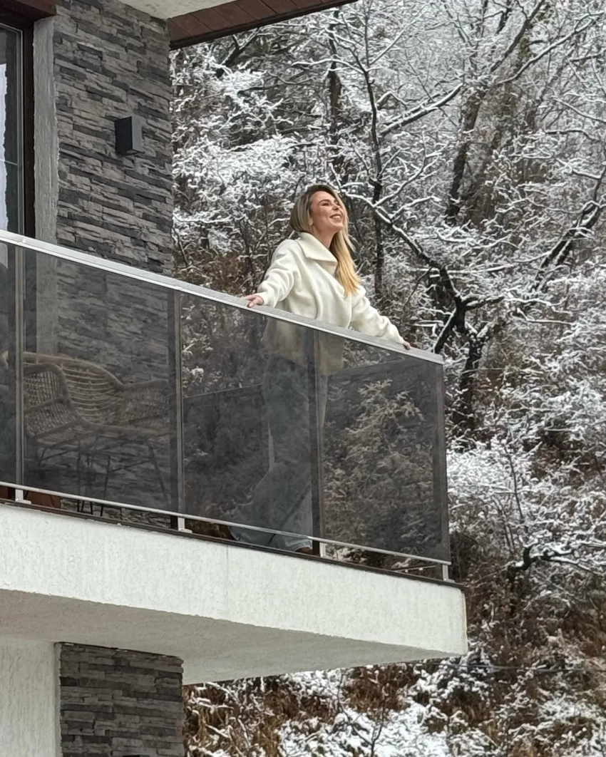 На снимках Пелагея позирует на фоне заснеженных деревьев, а также на балконе снятого в Красной Поляне дома. Также она добавила несколько совместных снимков со своей дочерью Таисией.