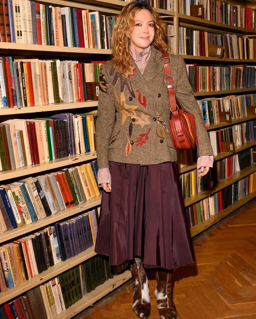 Анастасия Миронова/Фото: mironovanastasiia/Instagram*Юлия Высоцкая/Фото: juliavysotskayaofficial/Instagram*Саша Жаркова отправилась по делам в образе Гарри Поттера, а Мария Миногарова посетила светский ужин в топе-пиджаке и фактурной юбке. Ксения Чилингарова позирует на фоне книг в меховых сапогах. Алексей Жидковский тем временем выгуливает на Мальдивах свой редкий экземпляр сумки Hermes.