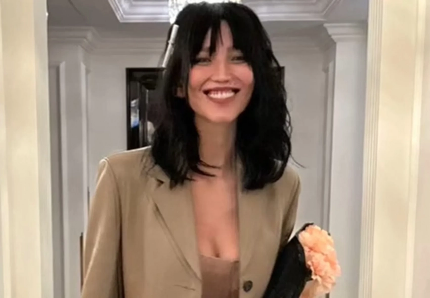 На одном из фото Эрвин сидит в автомобиле по пути на церемонию в уже готовом образе — на мероприятии она появилась в обтягивающей юбке в пол розового оттенка и корсете, на двух других сидит за столиком в кафе и идёт по коридору.