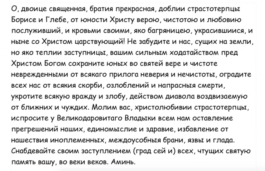Молитва в праздник святых Бориса и Глеба
